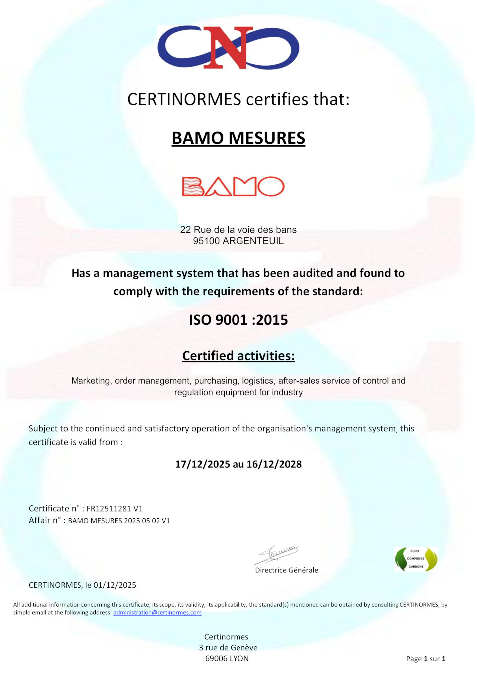 Certificate BAMO ISO 9001-2015 PDF Version