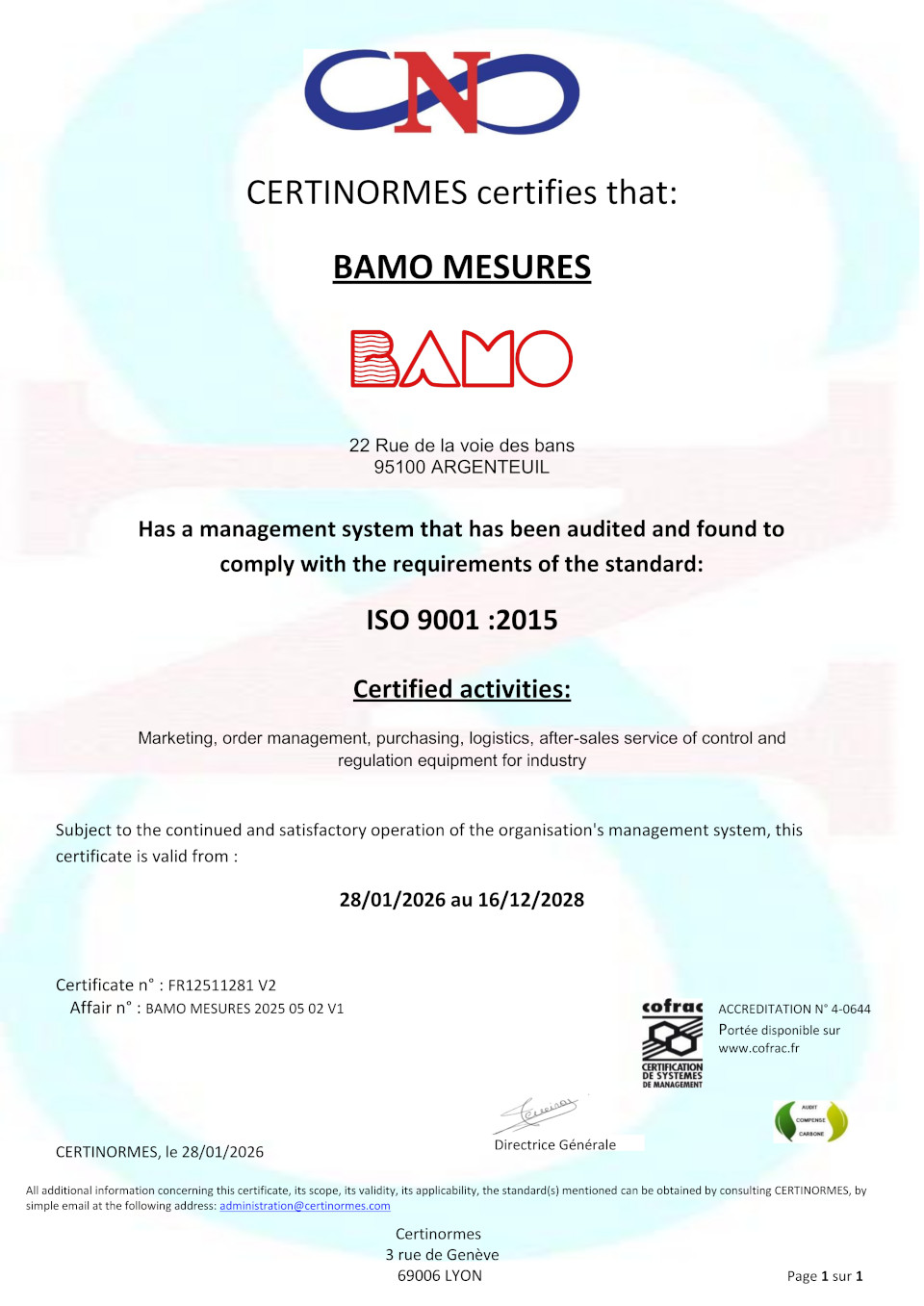 » BAMO is certified ISO 9001 Version 2015