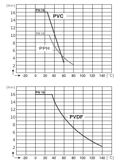 Unions (female) PVC, PPH or PVDF Other types or materials on request