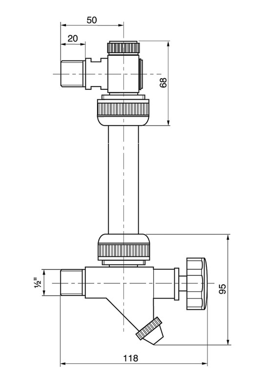 • Lower section: fitting equipped with a shut-off valve with drain screw. • Upper part: trim fitted with a vent cap.