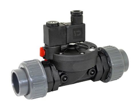 The EV920 solenoid valve allows control of water flow in a pressurized system by means of an electrical signal. It consists of a diaphragm controlling the main flow passage and a piston operating the secondary circuit assisting closure. In NC version (normally closed as standard), upstream pressure is used as back pressure to actuate the diaphragm and close the main circuit. When the coil is energized, the piston lifts and releases the back pressure, thus opening the circuit. This type of solenoid valve must always be installed on a pressurized pipeline, with a minimum ∆P of 0.3 bar.